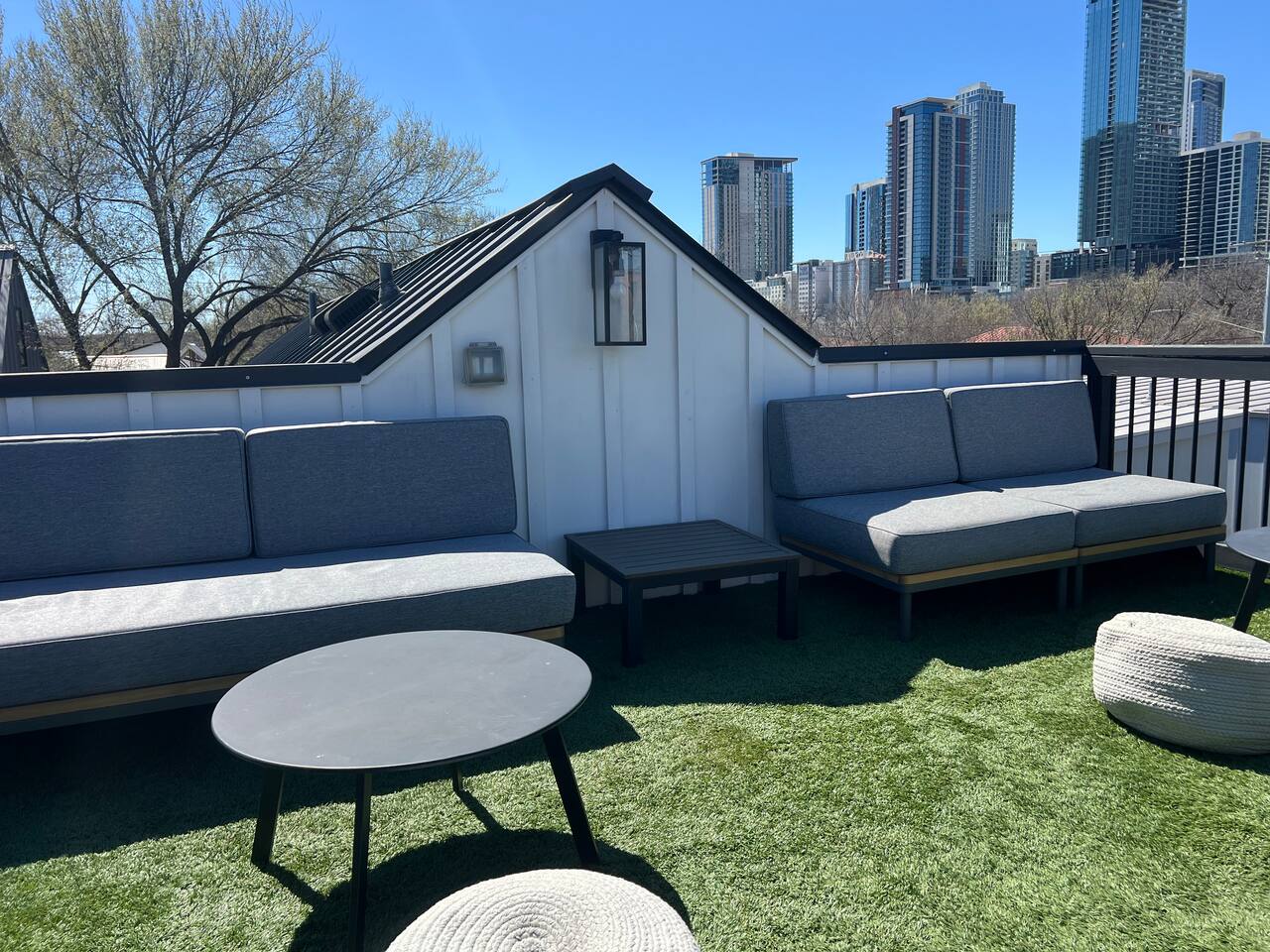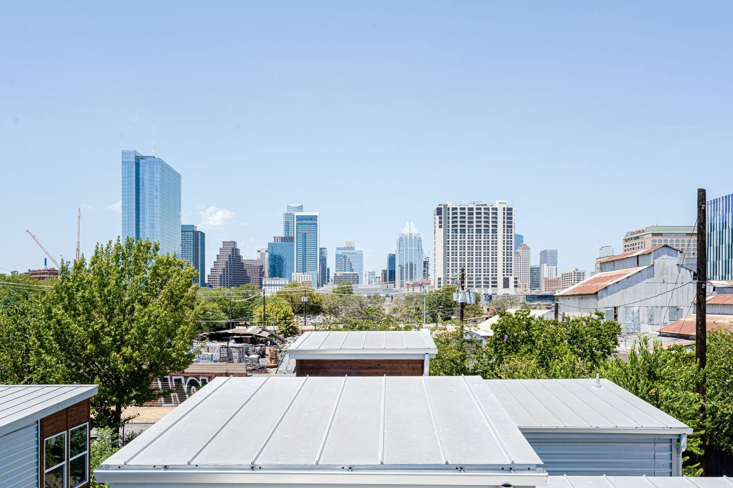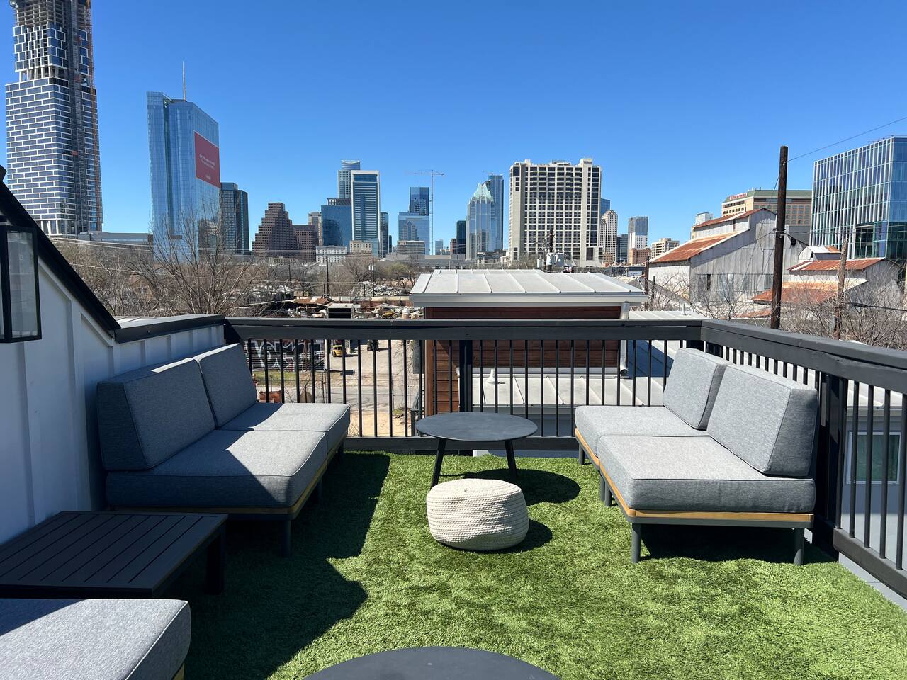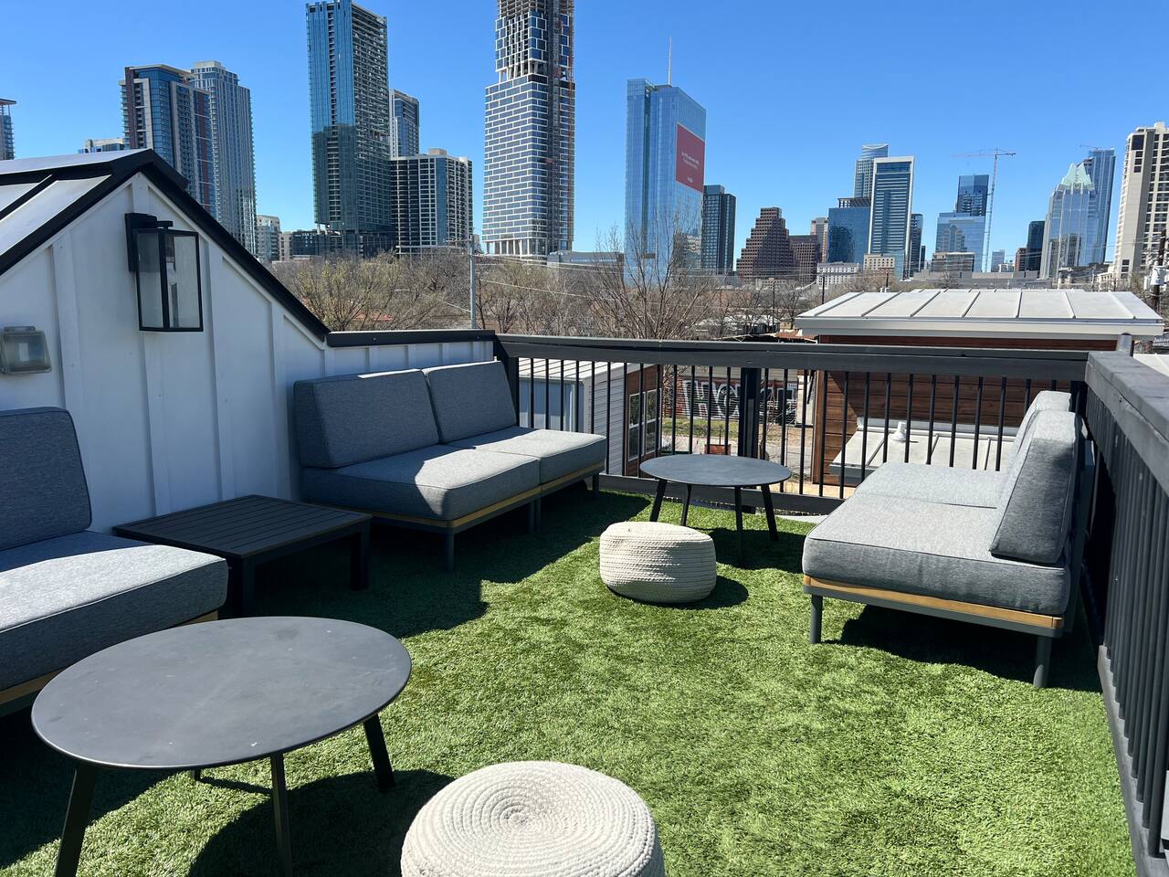 Welcome to the epitome of modern farmhouse living located in the heart of trendy East Austin! Enjoy views of Austin's skyline from our rooftop deck & relax in our 4 modern bedrooms and spa-like bathrooms for max comfort. Attractions are steps away! Franklin Barbecue, Rainey St bars, 6th St, Austin Convention Center. Whole Foods & Target are close by. No lame cleaning fees! 8 Gb Fiber internet w/Wi-Fi 7! Perfect for bridal showers, girls' and guys' trips, family reunions, & private events!